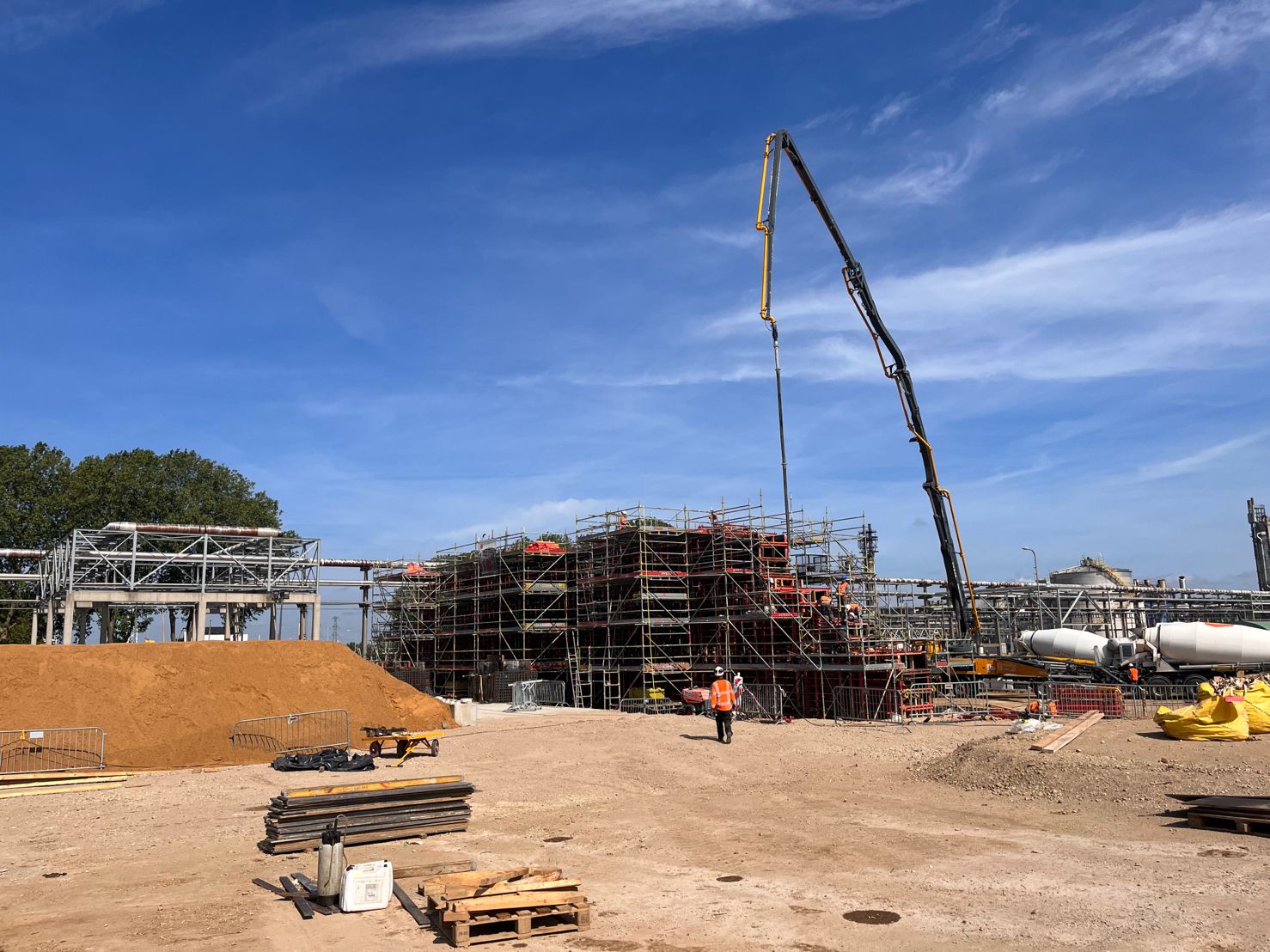 Vandaag stort Stevacon Bouw een 8,35m hoge en 1,5m dikke betonnen keerwand met 2 schuin aflopende zijkanten voor 1 van onze 6 lopende Chemelot projecten. Een uitdagende stort van bijna 500m3, zeker met de temperaturen van vandaag, welke tot in de avonduren nog zal doorgaan