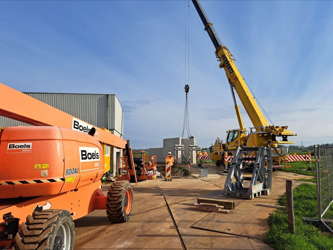 Inmiddels zijn de prefab betonnen wanden gemonteerd.