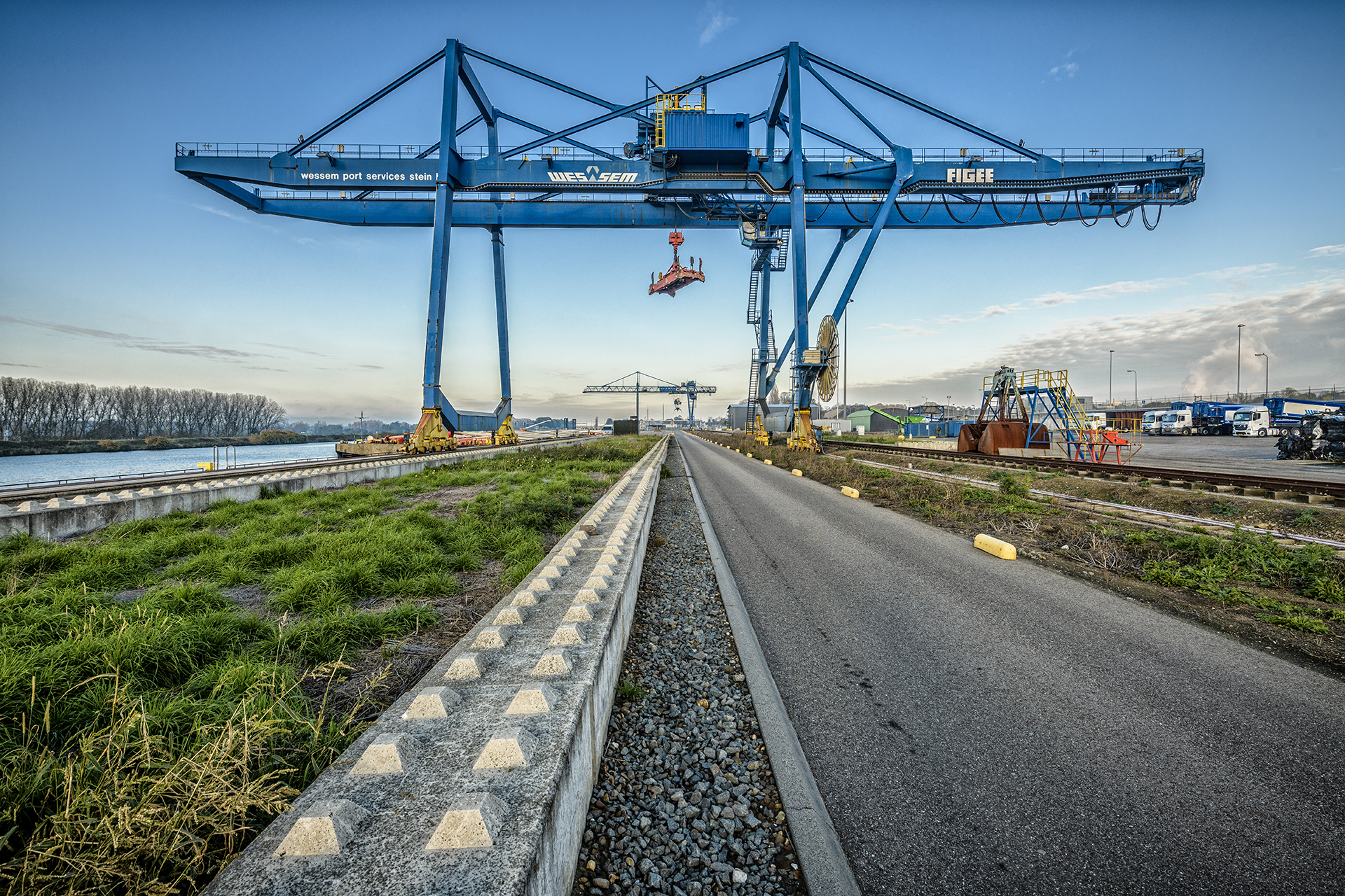 Een nieuwe leiding voor het transport van vloeibaar ammoniak van het Chemelot-terrein naar de haven van Stein, om precies te zijn. Een fraaie en bijzonder veelzijdige klus, waarbij we werkzaamheden op drie locaties uitvoerden. Zo droegen we op het ‘eindpunt’ van het stelsel, de haven, zorg voor onder meer de aanleg van een paalfundering, het plaatsen van leidingbruggen, de bouw van een controlegebouw en het vervangen van de gehele deksloof op de kade.